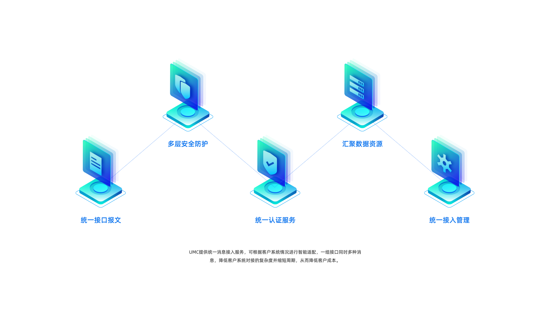 UMC提供統(tǒng)一消息接入服務(wù),可根據(jù)客戶系統(tǒng)情況進行智能適配,一組接口同時多種消息,降低客戶系統(tǒng)對接的復(fù)雜度并縮短周期,